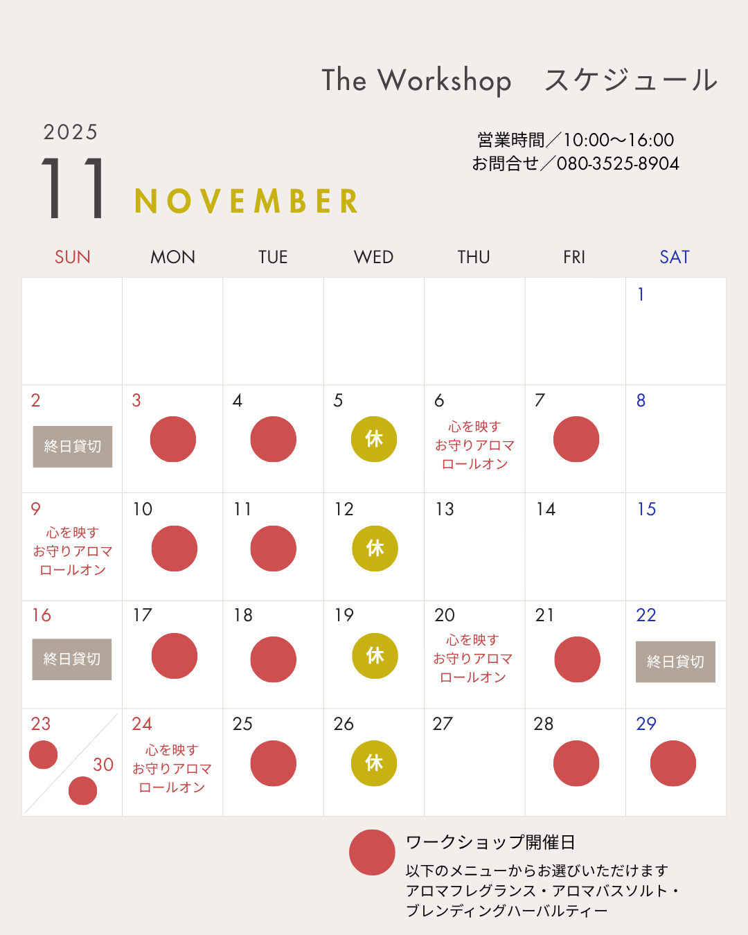 The Workshopより11月のお知らせです。