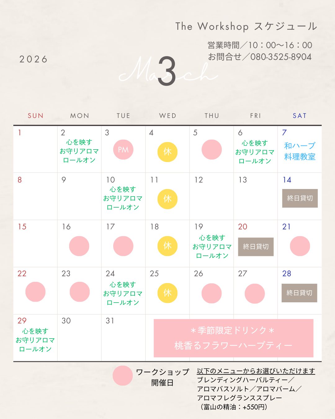 アロマ工房から3月のご案内をいたします。